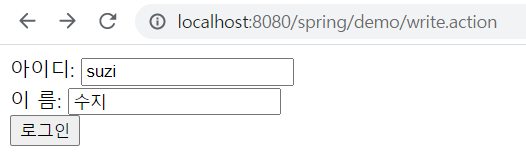 위의 form에서 /demo/write.action 주소가 와서 이 메서드가 실행되는 것이다.