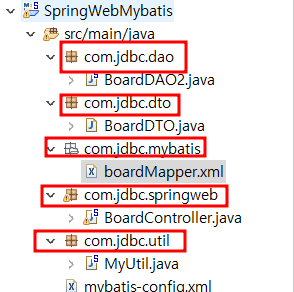 (1) - dao, dto, util 등 역할별로 패키지를 생성해서 클래스를 넣음