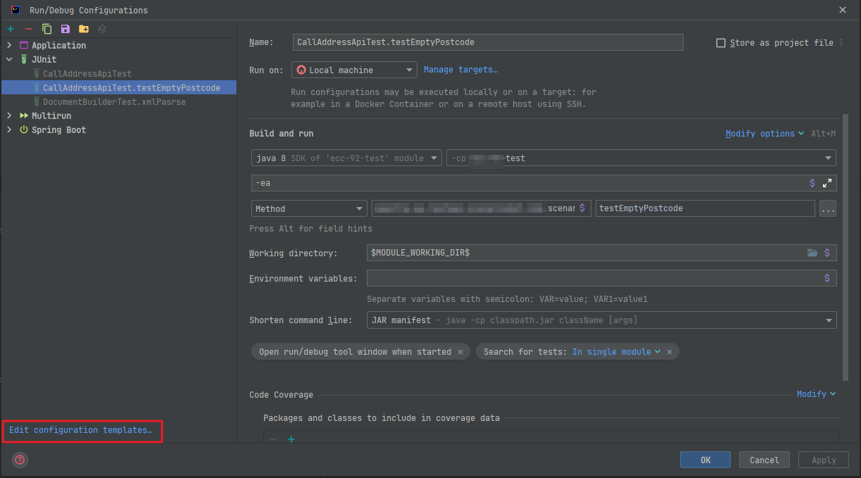 (1) 번에서 들어갔던 [Edit Configuration]에 들어갑니다.