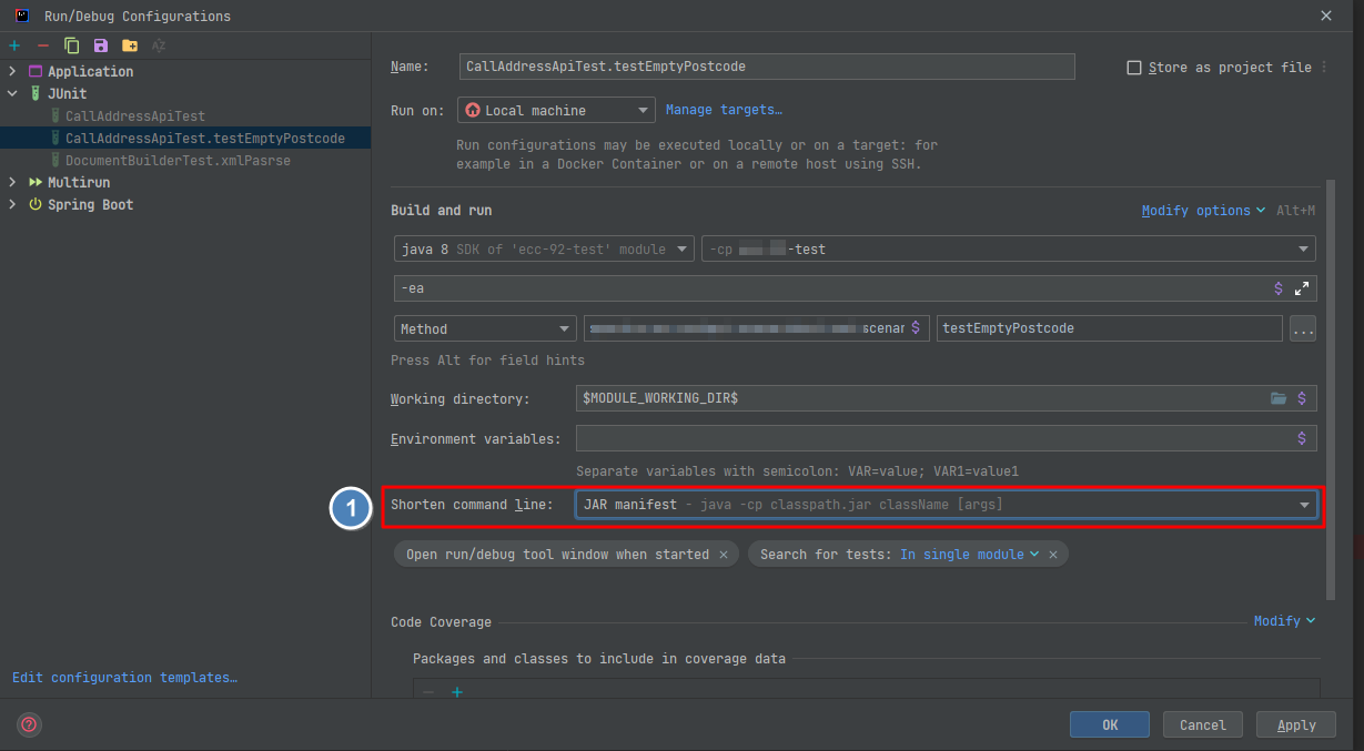 [IntelliJ + JUnit] Command line is too long. Shorten the command line via JAR manifest or via a classpath file and rerun 해결 방법